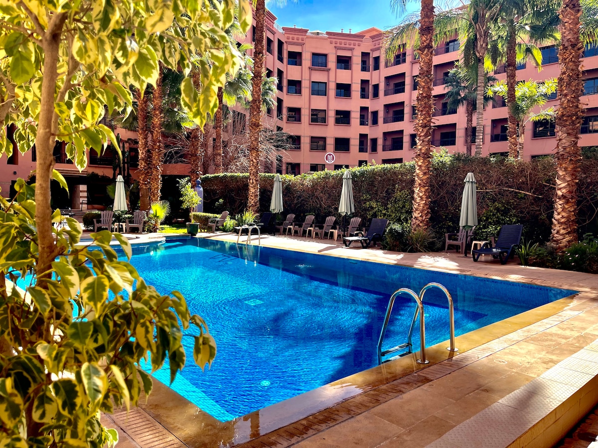 Helt ny leilighet med moderne utstyr og fasiliteter, med to store private svømmebassenger, i en trygg bolig med heis. Du vil sette pris på nærheten til Marrakeshs unike kultur og, viktigst av alt, muligheten til å skape uforglemmelige minner med dine nærmeste. Stedet Fra det øyeblikket du kommer inn i denne vakkert designede leiligheten, blir du betatt av oppmerksomheten på detaljer og fokuset på komfort.