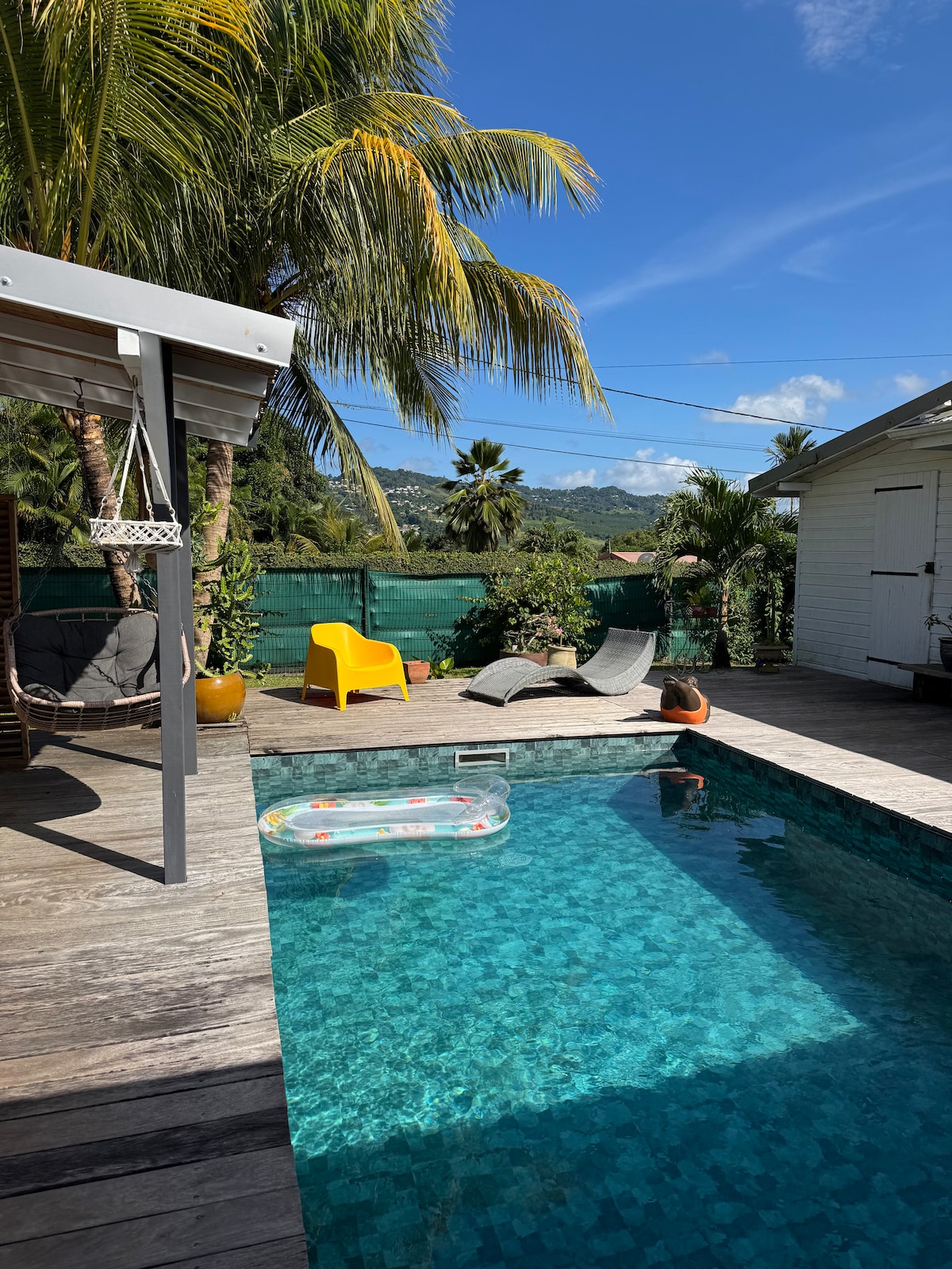 0 frais de ménage, 1 nuit mini Idéal croisières, transports aéroport ou marina Idéal pour rester dans le sud Petits-déjeuners, repas possibles A 2 min du Marin, dans une villa idéalement située sur l'axe principal menant au sud de l'île, cette chambre climatisée avec sa salle de bain, vous charmera par sa clarté, son confort Accès indépendant par la terrasse côté piscine Endroit sécurisé, proche des commerces et des plages à l'eau cristalline Vous profitez de la piscine à l'ombre des bananiers