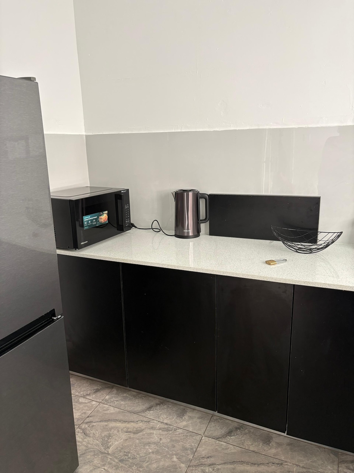 Nyt den moderne sjarmen i dette nylig ombygde hjemmet i Upper Avenues. Eklektiske detaljer inkluderer en 65 tommers smart-TV, luksuriøs pute-topp kingsize-seng, et plettfritt bad og en vaskemaskin foran. En Toyota Belta til leie kan være tilgjengelig for kjøring i Harare by. Innboks Nyt døgnåpen strømforsyning i denne blokken som har uavbrutt strømforsyning. For å gjøre det enklere for deg er det vannreservatstanker for å sikre ubegrenset vannforsyning under oppholdet.