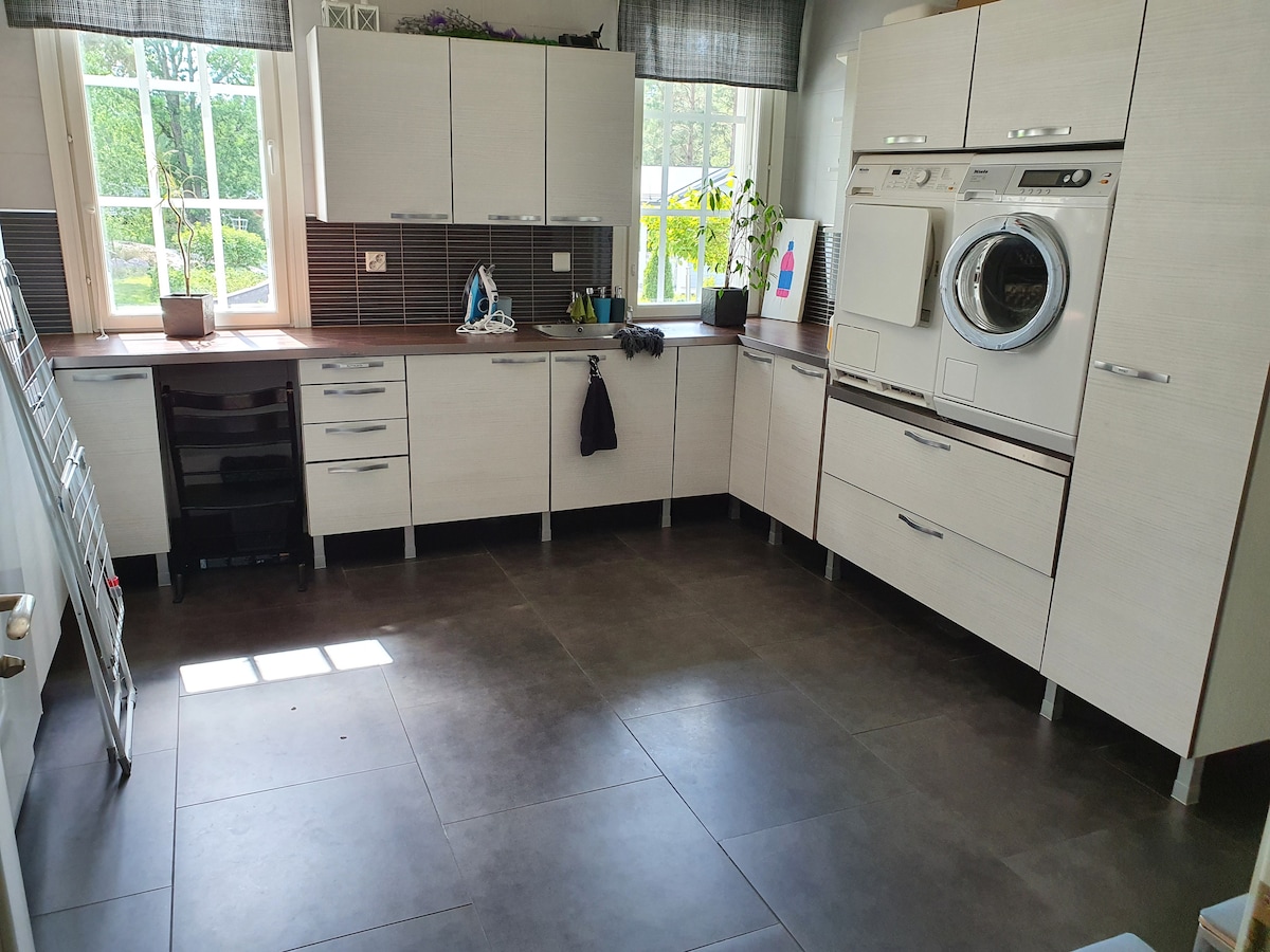 Jeg leier ut hjemmet mitt, og det er god plass til å slappe av. Ideelt for jobbreiser eller til og med to familier: fem soverom, kjøkken, badstue og pergola. Godt utendørs terreng, og fredelig! Romslige rom for seks, flere kan få plass (maks 10). I skapet på vaskerommet, Lego, dublots og briots, komfortable og romslige områder for voksne å sosialisere seg. Mot en ekstra pris: – utendørs boblebad € 80 – Sengetøy og håndklær 5 €/sett (inkludert i prisen for bestillinger over to dager). Kjøpesenteret Mylly, ti minutter. Turku jernbanestasjon ca. 15 min. Mumiverden 25 min