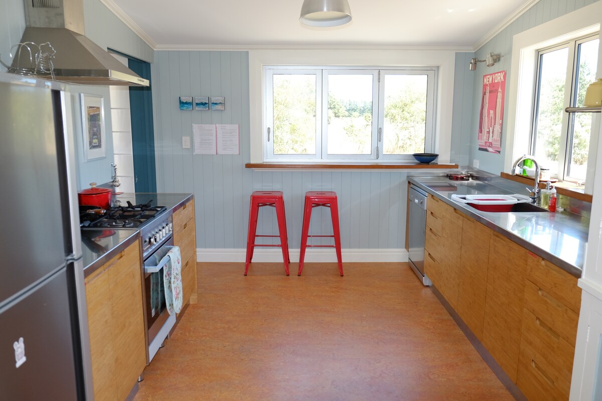 Slapp av ti minutter fra byen i en sjarmerende hytte på landet med alle mod cons. Nært nok til fasiliteter for å utforske byen, men rolig nok til å se og høre tui 's, kereru og Ruru (morepork ugler) om natten. Det er en bekk som renner gjennom den nederste paddocken for barn å plaske i eller utforske for ål mens du nyter solen på terrassen. Det er et flott sted for en romantisk ferie eller en familieferie på landet. Det er mange turer rundt, dyr å se og roen er uslåelig.