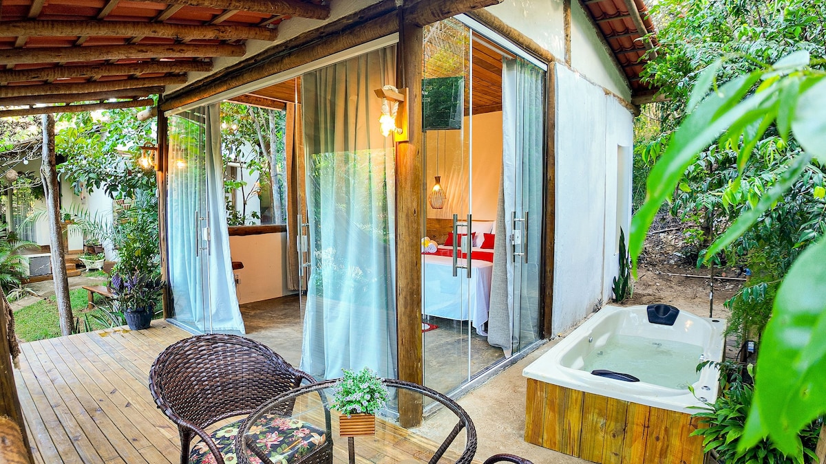 Koselig suite med plass til opptil fire personer, som ligger 1,0 km fra stranden, utstyrt med TV og klimaanlegg,minibar, Wi-Fi, privat bad, felles utendørs serviceområde, en hengekøye på balkongen, et lite basseng for å slappe av, kyllinger, skilpadder for barn å bli distrahert og lytte til lyden av dyrene. Perfekt for deg som liker å bo i naturen.