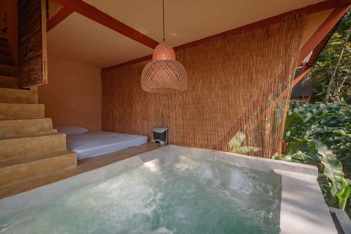 Konseptet vårt er privatliv og komfort midt i naturen. Hvert rom har en kingsize-seng av høy standard for komfort. Alle rommene har direkte utsikt over innsjøen, balkong og eget bad. Jacuzzien ligger øverst på fjellet under de imponerende eukalyptustrærne. Du kommer inn i huset gjennom taket, for å finne en fantastisk utsikt over innsjøen. Vi har skreddersydde opplevelser, tradisjonell mat, en kokk, vannaktiviteter og spa. Padlebrett og kano er inkludert.