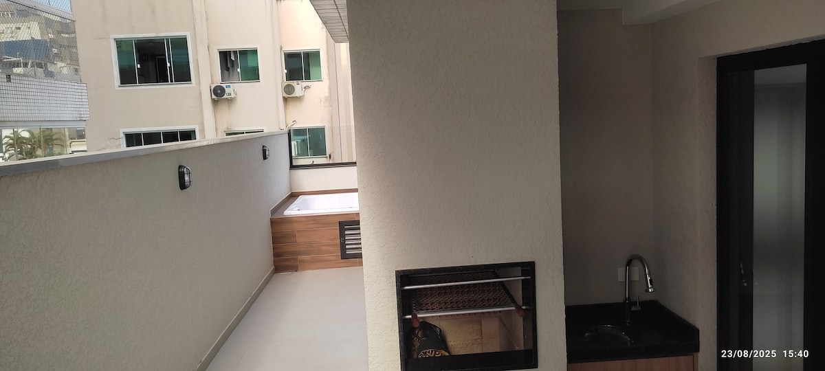 Komplett leilighet i Caiobá, én kvartal fra stranden, godt vedlikeholdt, med strandutstyr til bruk, Wi-Fi, TV, to soverom (ett dobbeltrom med bad og aircondition, og ett med to enkeltsenger og takvifte), balkong med grill, vaskemaskin og garasje med tak for én bil. – Komplett kjøkken med alle elementer tilgjengelig for bruk. – Sengetøy tilgjengelig. – Badekåper tilgjengelig. – Dusj med gassoppvarming. – Strandstoler, solskjerm og solvogn tilgjengelig.