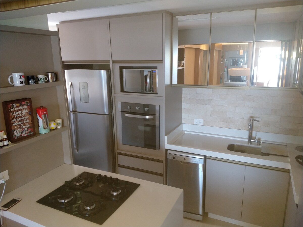 Toppleilighet for opptil åtte personer, bare to kvartaler fra havet, i Caiobá (Matinhos-PR), i et førsteklasses område. Den har tre soverom (ett med eget bad), alle med klimaanlegg og vifter, en stue, et kjøkken med gourmetplass og en grill, et gjestebad og en stor balkong. Den har en garasje for én bil, trådløst nettverk, vaskemaskin og tørketrommel. Nær ASPP, UFPR, Sorveteria D'Vicz, Casa do Camarão, Empório Pancy Bakery og Michelon Supermarket.