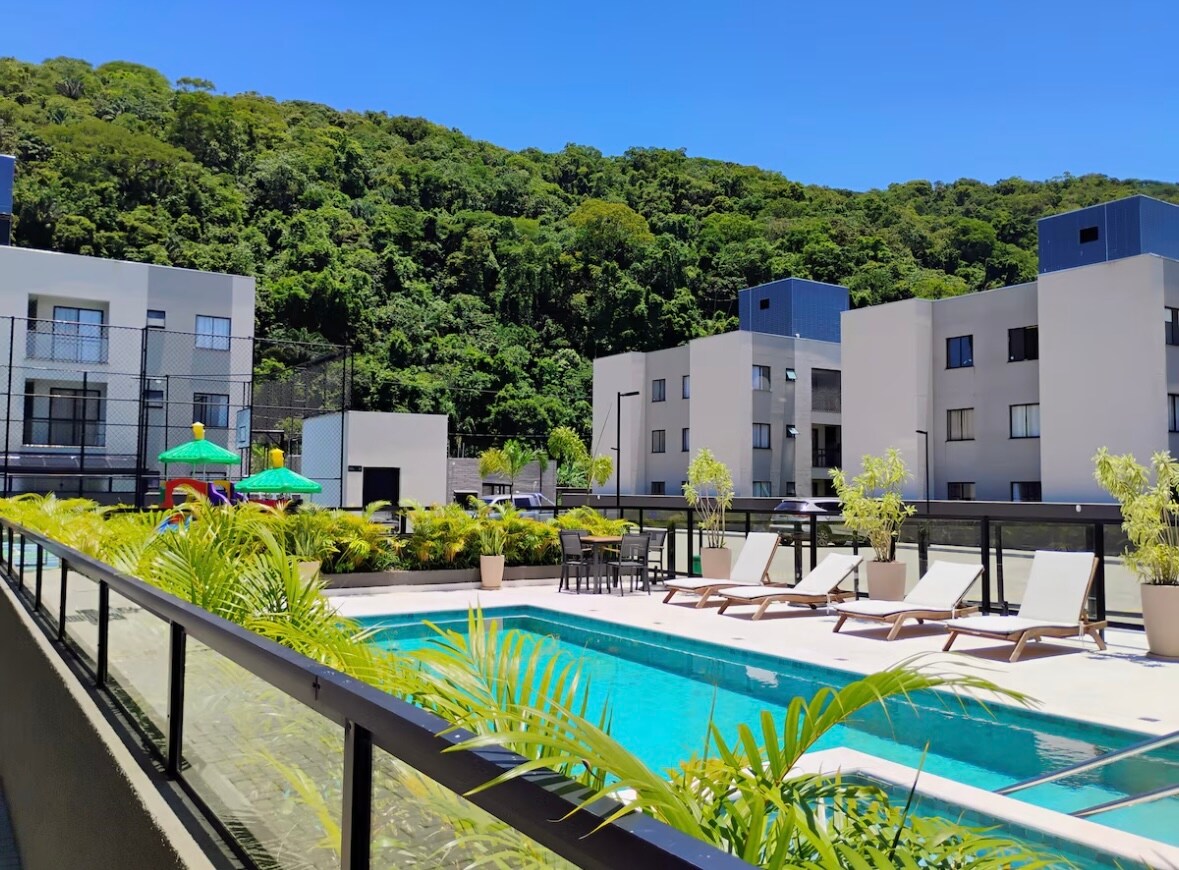 Toppleilighet i to plan ved stranden i leilighetskomplekset Ilhas do Atlântico Club, med privat boblebad, gourmetområde med grill og sideutsikt over havet. Det er to soverom, to bad, klimaanlegg i alle rom, et fullt utstyrt kjøkken, Wi-Fi og to overbygde parkeringsplasser. Leiligheten tilbyr et svømmebasseng, idrettsbaner, en lekeplass og tilgang til stranden. Kjæledyr er tillatt, og det er plass til opptil åtte gjester, med mer komfort for fire personer. Perfekt for familier, par og grupper som er ute etter hvile, fritid og flott beliggenhet.