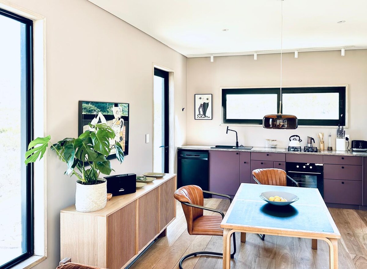 RiverStone Cottage ligger ved foten av det majestetiske Simonsberg-fjellet med panoramautsikt i alle retninger. Enten du slapper av under store eiketrær eller ved bassenget og ser solnedgangen gjøre fjellene rosa, eller du er en morgenfugl og ser solen gå opp bak den frekke, spisse Botmanskop, er det mange øyeblikk å åpne munnen for over storheten som omgir dette helt spesielle stedet.