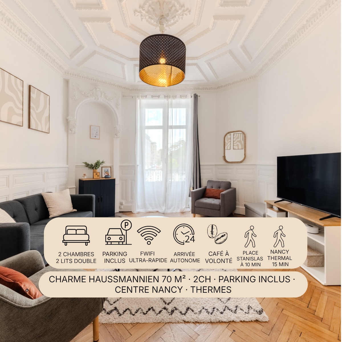 Leiligheten er fullt utstyrt, stille og nært alle butikker. Det ligger praktisk til i Faubourg des 3 house-distriktet. For å komme til det berømte Place Stanislas kan man ta Grande Rue de Nancy i 1 km, gate som er fotgjengervennlig og veldig fin. Togstasjonen ligger 1,5 km unna, og Parc de la Pépinière ligger 500 meter unna.
