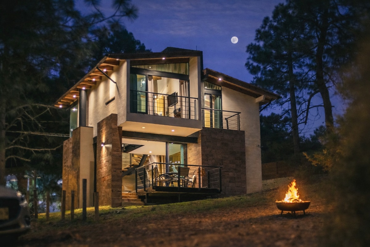 cabaña moderna con estilo wabi-sabi. con vistas panorámicas y atardeceres espectaculares a dos minutos del centro de Mazamitla.