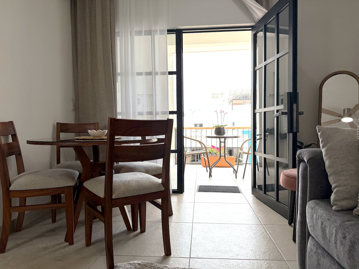 Trivelig leilighet i andre etasje, med flott naturlig belysning, dekorasjon og to balkonger med utsikt foran og bak bygningen. To fullt utstyrte soverom (én queensize-seng + to enkeltsenger). To komplette bad Ingen heis. Kjæledyr tillatt. -------------- Cómodo departamento en 2do nivel (planta superior) con mucha luz natural, decoración acogedor y balcones frente y detrás del edificio. 2 baños completos 2 recámaras (1 queen + 2 ind). No hay elevador. Se aceptan mascotas