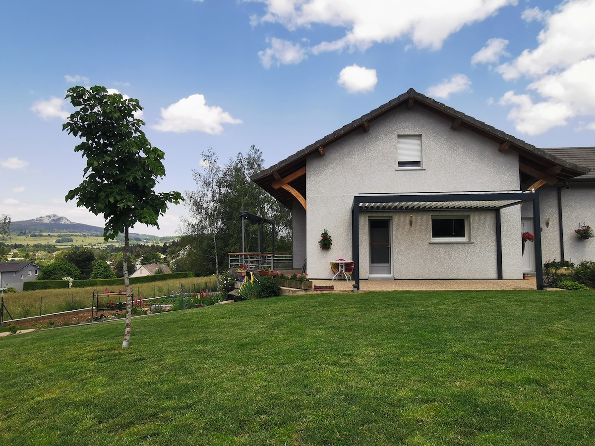 Unn deg en romantisk ferie i en renovert gård fra 1700-tallet. Koselig studioleilighet med panoramautsikt over fjellet, privat jacuzzi og badstue, utenfor siktelinje. 🌹 Champagne, blomster og kronblader er tilgjengelig for å forbedre kveldene dine. Hyggelig uteområde med grill, fem minutter fra restauranter og elv. 📍35 minutter fra St-Étienne, ti minutter fra Yssingeaux, 30 minutter fra Le Puy, ti minutter fra Himalaya- gangbroer.