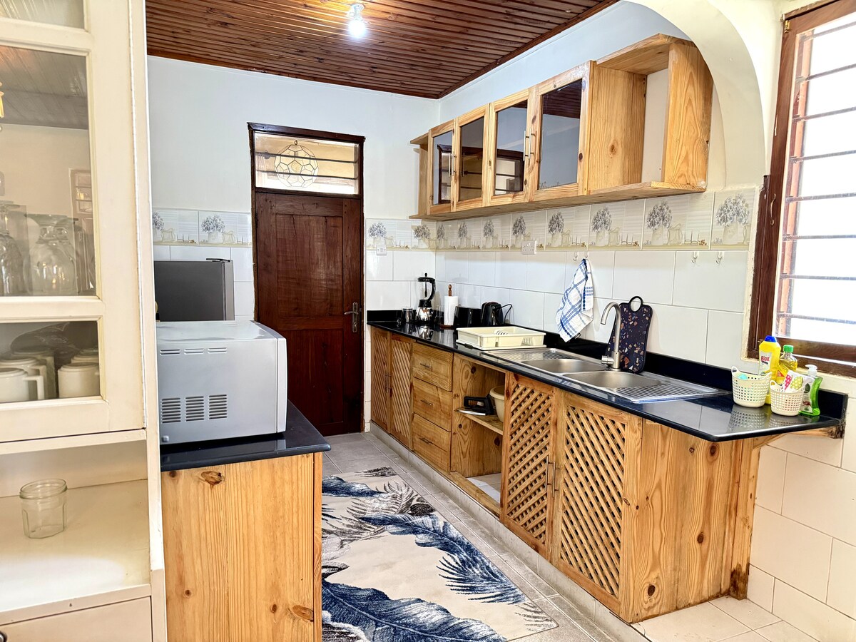 Len deg tilbake og slapp av på dette rolige, elegante stedet i Mbezi Beach, med et moderne åpent kjøkken, perfekt for matlaging og sosialt samvær. Den romslige stuen har en varm og avslappende atmosfære, mens det fredelige soverommet sikrer et avslappende opphold. Dette stedet er gjennomført designet med komfort i tankene, og det er ideelt for både korte og lange opphold. Nyt bekvemmeligheten av en førsteklasses beliggenhet med enkel tilgang til stranden, restauranter og byens attraksjoner. Det perfekte hjemmet hjemmefra!