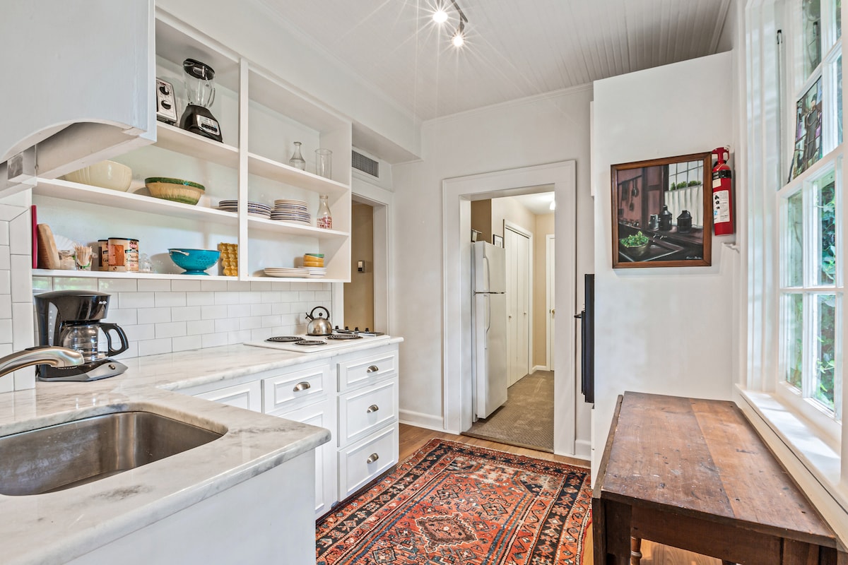 Bo på gjestehuset vårt i Cameron Park! Med i boken "Historic Homes of Waco". Hytta ligger på den historiske eiendommen Waco Penland, ble bygget i 1924 og er nyrenovert. Nydelig nytt kjøkken med benkeplate i marmor og t-banefliser. Nytt bad har stor dusj og nye inventar, nytt teppe og fliser. Tempurpedic madrass. Keurig m/mye kaffe! 5 minutter til Magnolia Silos og sentrum. Gå på området, eller ett kvartal til Cameron Park for kajakkpadling, sykling, etc. STR418052020