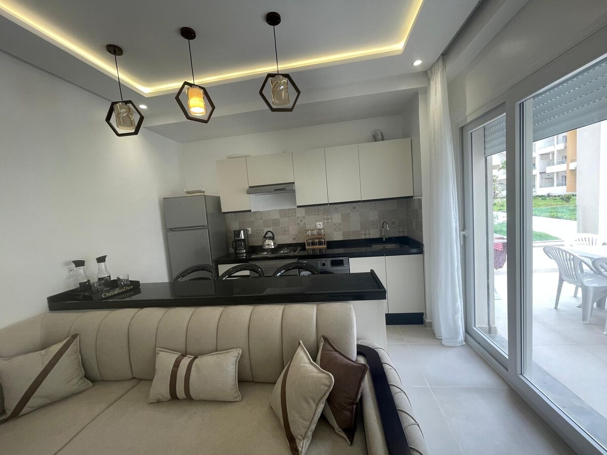 Fin ny leilighet i en sikker privat bolig med tre svømmebassenger, et lekeområde for barn, gratis parkering på stedet og fem minutter fra stranden. Leiligheten består av ett soverom med bad, en stue, en spisestue, et velutstyrt kjøkken, et dusjrom og en stor, velutstyrt terrasse. I nærheten av alle fasiliteter (kafé, restaurant, apotek og supermarked). Leiligheten ligger ti minutter fra Martil og M'diq.