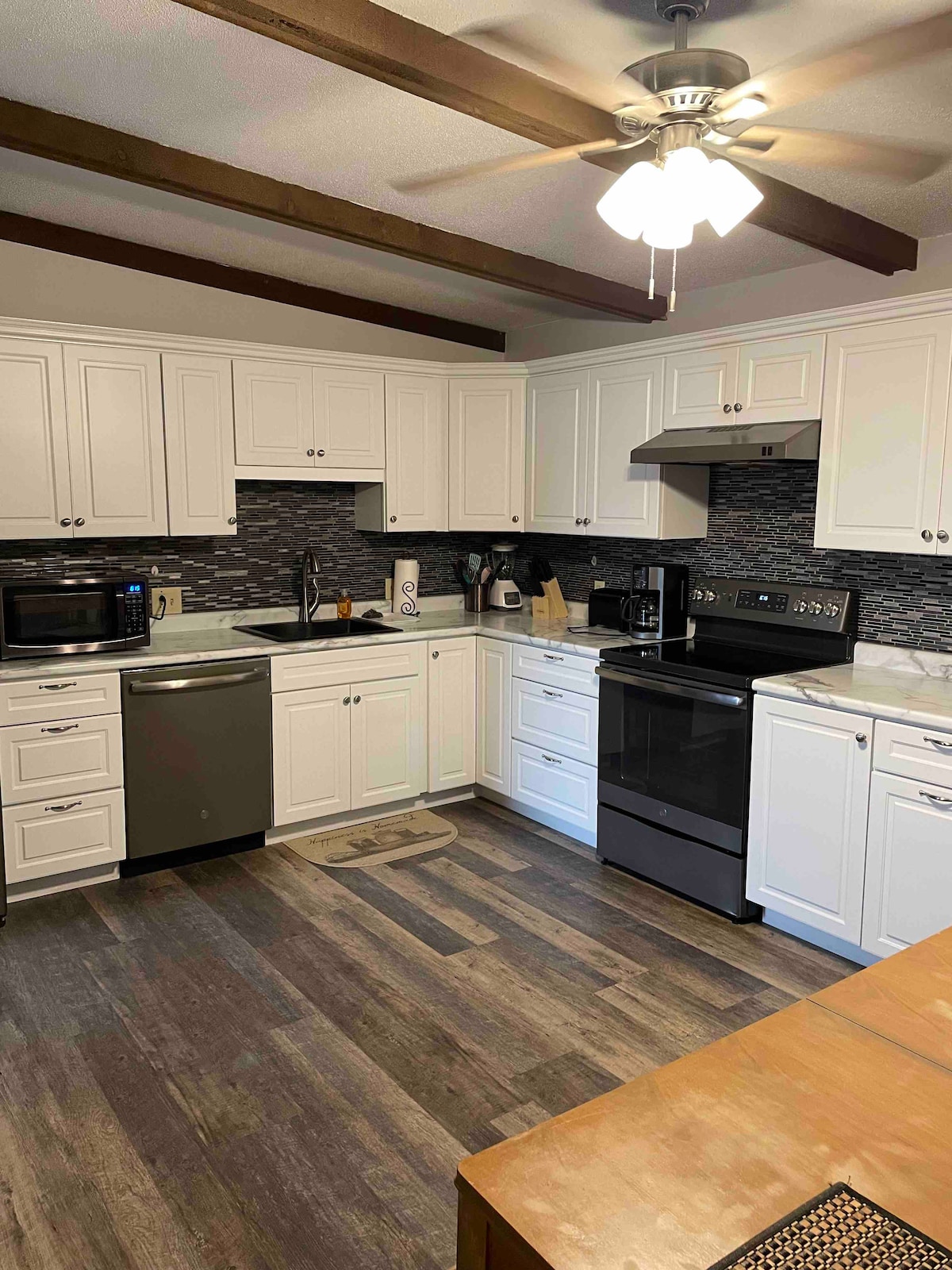 Du vil nyte det koselige huset vårt i Meade som ligger i et rolig nabolag bare et minutt fra sentrum og tre minutter unna Dalton Gang Hideout og Meade County Museum. Hjemmet vårt har tre soverom med putesenger og en stue som har en sovesofa og to lenestoler for avslapning mens du ser på Roku-TV. Det fullt møblerte kjøkkenet har alle kjøkkenredskaper, servise, bestikk, mikrobølgeovn, blender, crock gryte, mikser, sandwichmaskin, utvalg, kjøleskap og kaffestasjon.