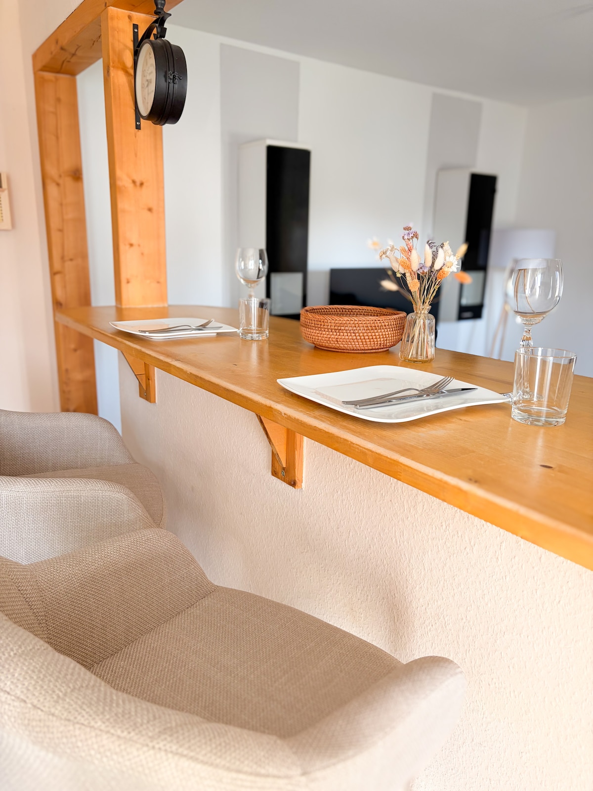 Entspannt euch in unserer besonderen und ruhigen Unterkunft! Das neu eingerichtete Apartment für bis zu 4 Personen mit ca. 60 qm verteilt sich auf zwei Etagen. Hervorzuheben sind eine vollausgestattete Küche, TV, Schlafcouch, große Panoramafenster, ein gemütliches Boxspring-Bett, die eigene Terrasse mit Außenbestuhlung sowie ausreichend Kundenparkplätze. Das Panoramafenster der Ferienunterkunft ist Richtung Sonnenaufgang und Wald ausgerichtet. Wir freuen uns auf euren Besuch!