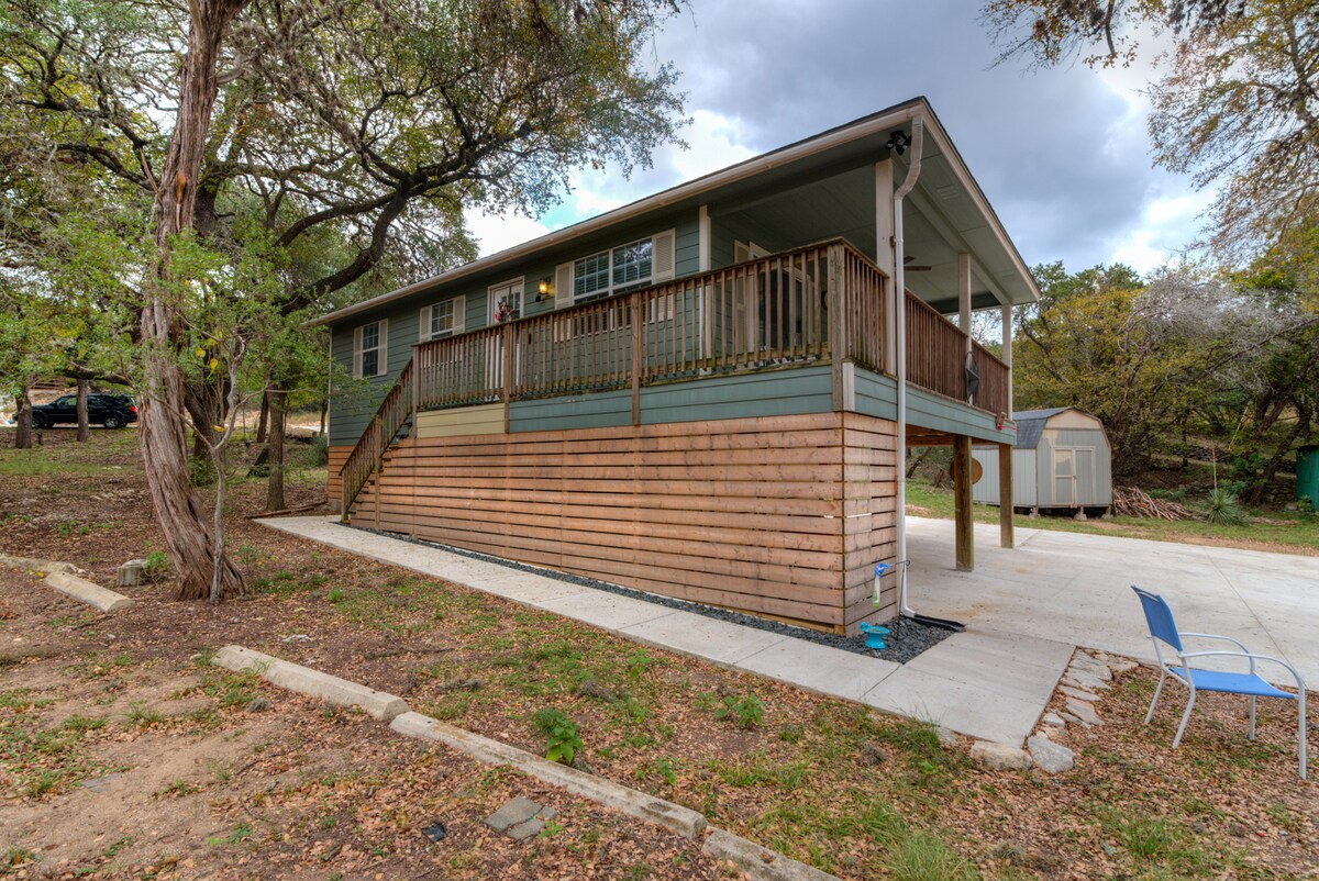 • Avsidesliggende ferie for par i Texas Hill Country – tildelt Airbnbs ettertraktede topp 5 % av hjem og «Gjestefavoritt». • Plassert i trærne på en bakketopp (høyde 1800 fot!) i det vakre Texas Hill Country. Designet med det ene formål å skape et koselig sted for par å dele en spesiell anledning eller bare komme seg bort fra stresset og travelheten i hverdagen. • Nyt turstiene eller bare slapp av i hengekøyen i tretoppen med utsikt over den vakre dalen. • Frokost inkludert!