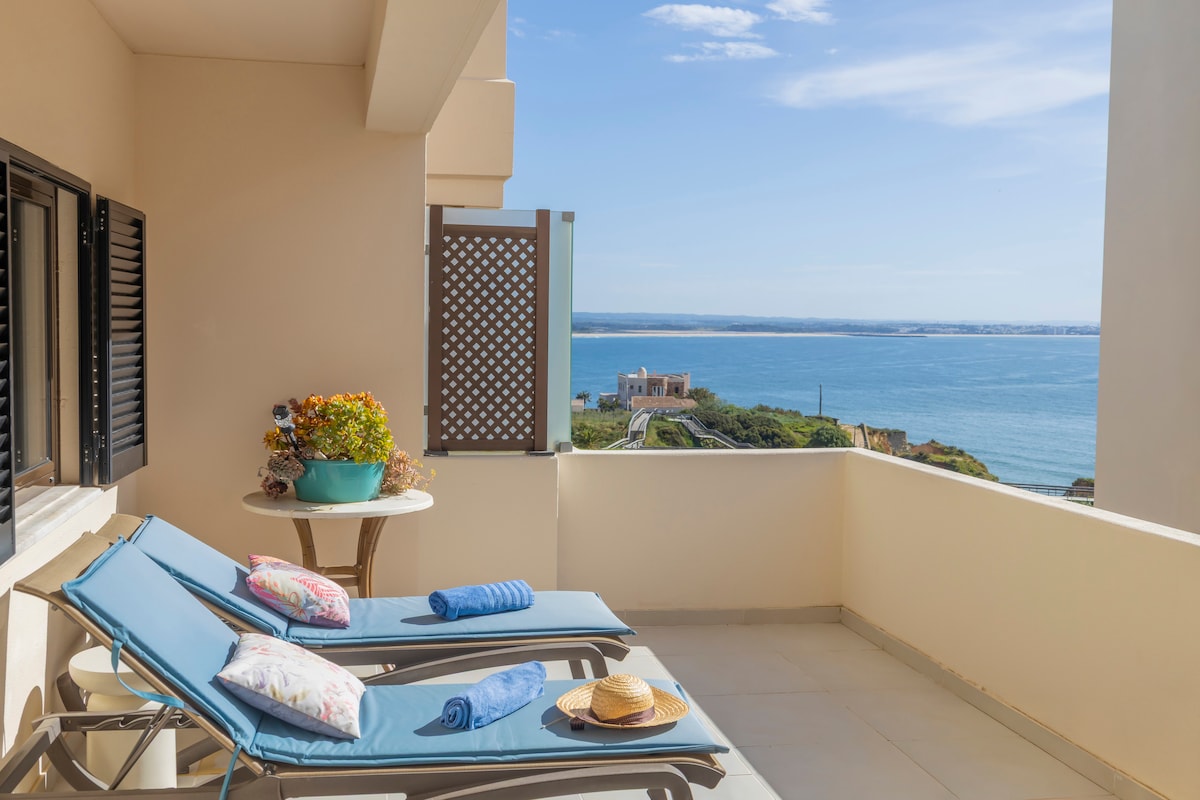 Over Praia da Dona Ana er leiligheten vår et lite paradis. Nyt en vakker soloppgang eller en vakker solnedgang på terrassen med 180º havutsikt. Føl deg på toppen av verden! Huset vårt er unikt i Algarve. Fra beliggenheten til den prisbelønte stranden ved føttene våre, alt er fantastisk. Av kontraktsmessige forsikringsgrunner godtar vi ikke gjester under 24 år når de ikke ledsages av personer over 24 år. Boblebad REPARERT 30.07.2022.