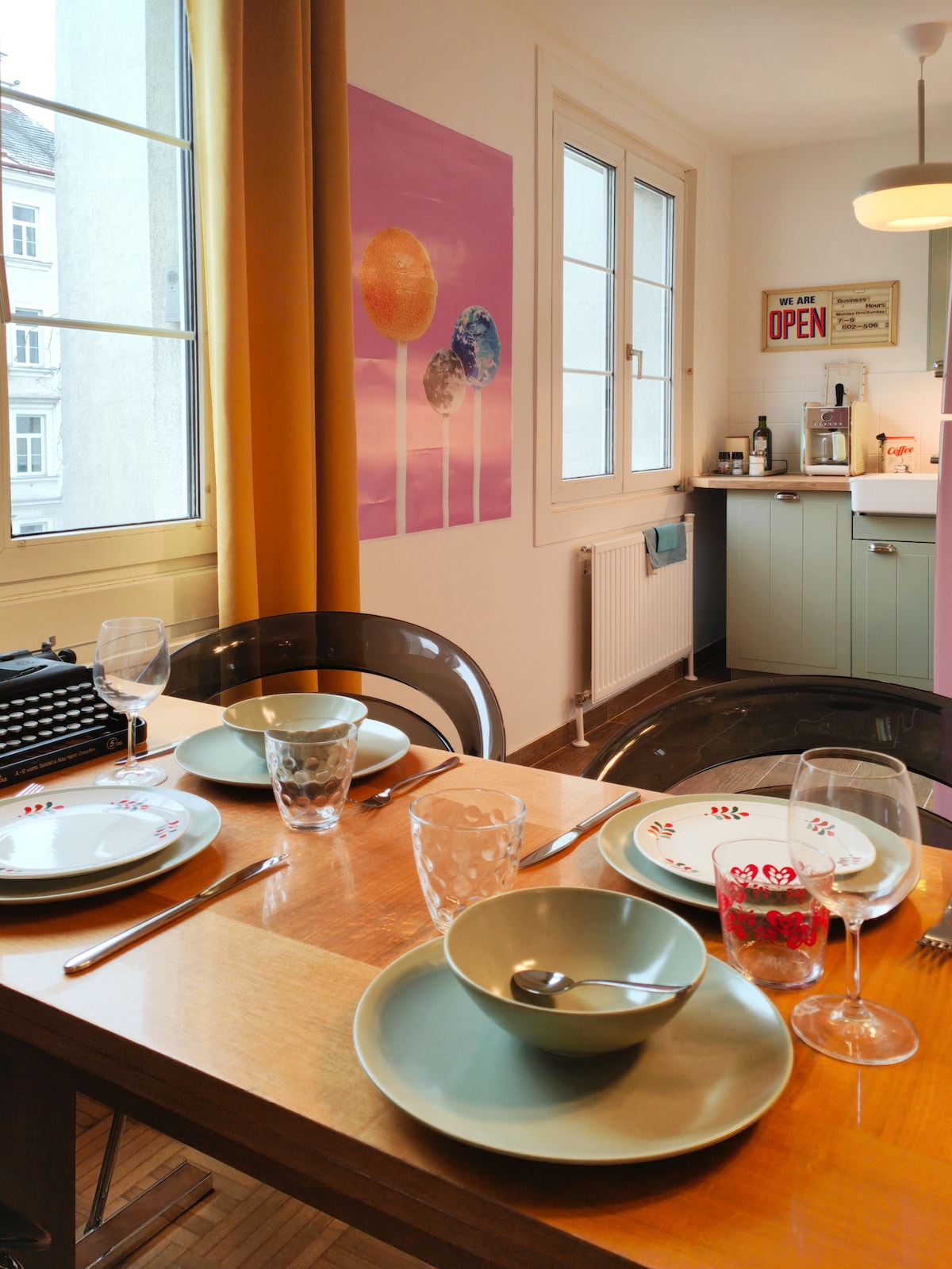 To nyoppussede, sammenkoblede leiligheter, 130 kvm, i hjertet av sentrum, rett overfor Kunstakademiet/Semper Depot, bare noen minutters gange til Mariahilfer Strasse, Secession, Naschmarkt, TU og State Opera. Leilighetene ligger i to etasjer og har komfortabelt plass til opptil åtte personer. Hver leilighet har sin egen unike personlighet. Den ene er en levende loftsleilighet, og den andre har den avslappede elegansen til en intim gateaway midt i det travle livet i Wiens sentrum.