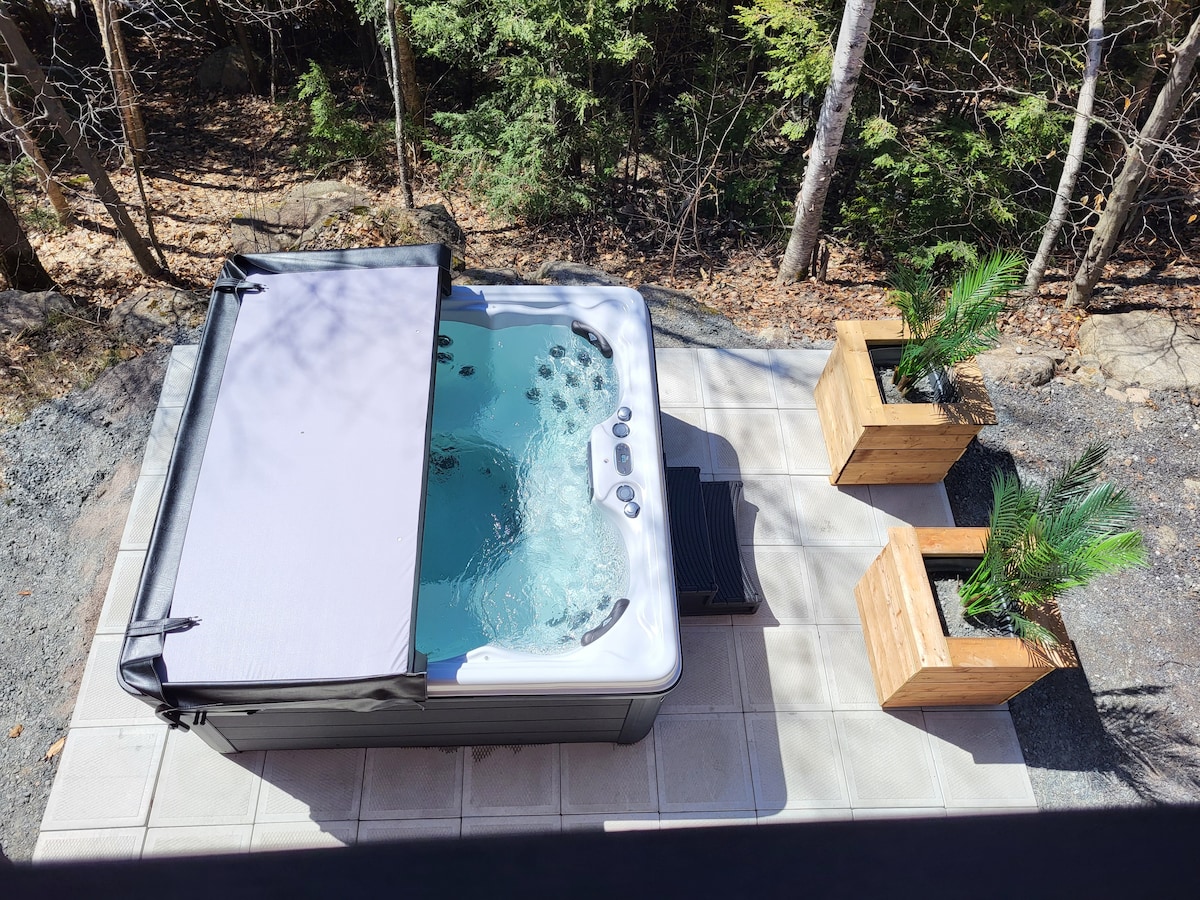"Le Petit Boho", hvor zen og glede møtes. Omgitt av et fjell i bakgården med spa og 100 m fra en stor innsjø (Lac Sarrazin) med brygge, kajakk, SUP. Denne lille oasen av fred ligger også i hjertet av turstiene og skibakkene, mellom Tremblant og St-Sauveur. Enten du er midt i innsjøen, godt plassert nær vedovnen eller i spaet, vil det være vanskelig å ikke la deg rive med av roen og naturen. CITQ #302389