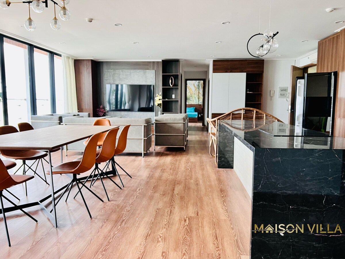 Denne dobbeltleiligheten inkluderer to naboleiligheter med totalt tre queen size-senger og sengetøy av høy kvalitet. Den er ideell for store grupper på fem–syv personer. Den har alle nødvendige fasiliteter for oppholdet ditt med familien, inkludert: vaskemaskin, kjøkken, en balkong med super sollys og gateutsikt – en virkelig lokal opplevelse sammenlignet med overfylte hotellrom. Leiligheten ligger midt i sentrum: fem minutter fra gågaten Bui Vien og mange boder med gatekjøkken i nærheten.