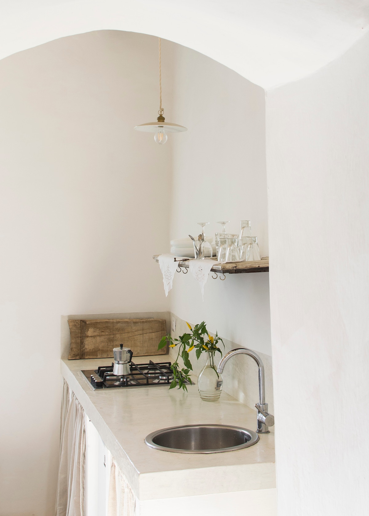 Et stort oppholdsrom med stue, TV, trådløst nettverk, spisestue, kjøkkenkrok og vaskerom. Den lille terrassen på gulvet, som er utstyrt, gir ekstra utendørs oppholdsrom. Restaurerte innerdører. Soveområdet består av et hovedbad og tre soverom med aircondition: to enkeltrom, hvorav ett har eget bad, og et dobbeltrom. Den øvre terrassen er utstyrt med en utedusj, fire solsenger, to lenestoler og en benk, for avslappende pauser og åpen utsikt.