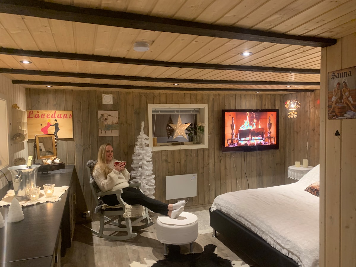 We are the proud owners of this very special cabin located right at the seafront. Modern fully equipped kitchen and stylish living room with panoramic views through the large windows facing the sea. The cabin is fully equipped with everything you will need and the bathroom is spacious with water closet and large shower. Washing machine/tumbling dryer and dishwasher is also available and can be used freely.