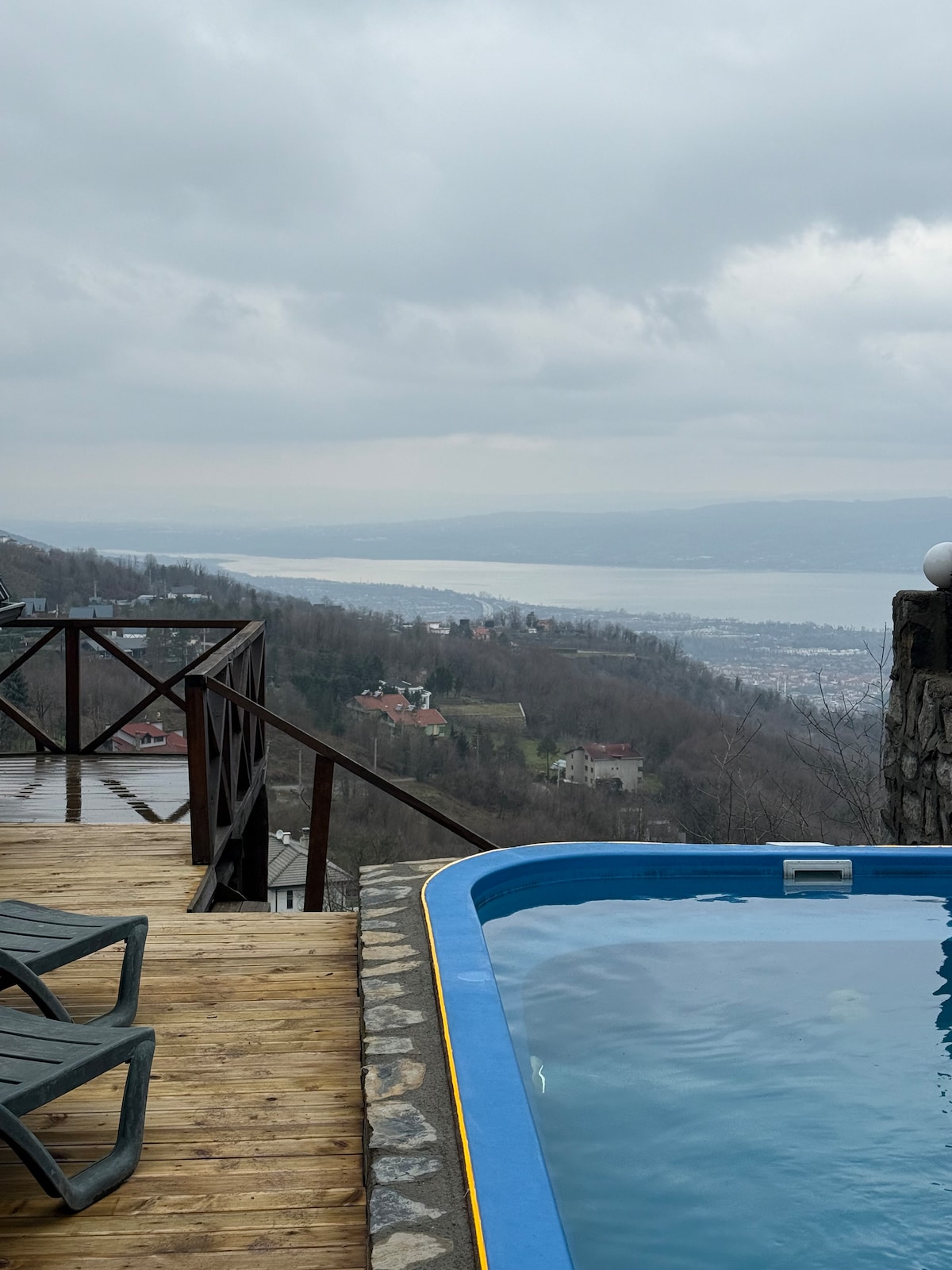 Vi har to hus med varme bassenger med utsikt over skogdalen i hjertet av naturen, 6 km fra sentrum. Du kan se husene våre på profilen vår. Bassenget er omgitt av spa, boblebad, griller og har egen hage på 500 kvm. Du kan skrive for mer informasjon. Informasjonen om huset er på det andre bildet. Du kan kontakte oss der. Grupper med jenter og gutter kan komme separat. Det er en familiebedrift. Takk for interessen på forhånd. Takk