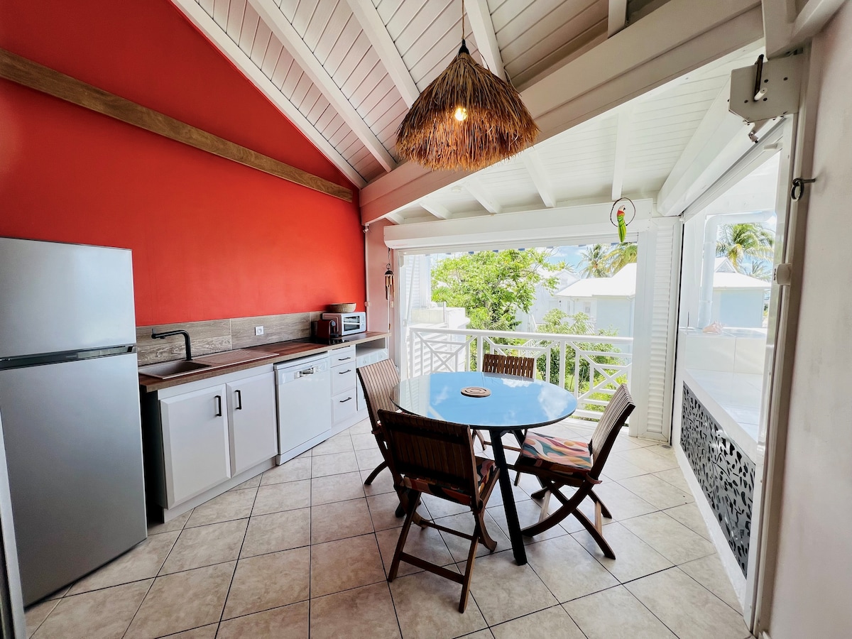 Velkommen til PAVILJONGEN! Vi ser frem til å ønske deg velkommen til dette nylige og stilige hjemmet på 80 kvm med privat basseng. Den ligger i et rolig område i St. François, mindre enn fem minutter fra sentrum (butikker, marina, golf, flyplass, strender osv.). Eiendommen har en avslappende atmosfære og naturlig ventilasjon. Ideell for en avslappende ferie.