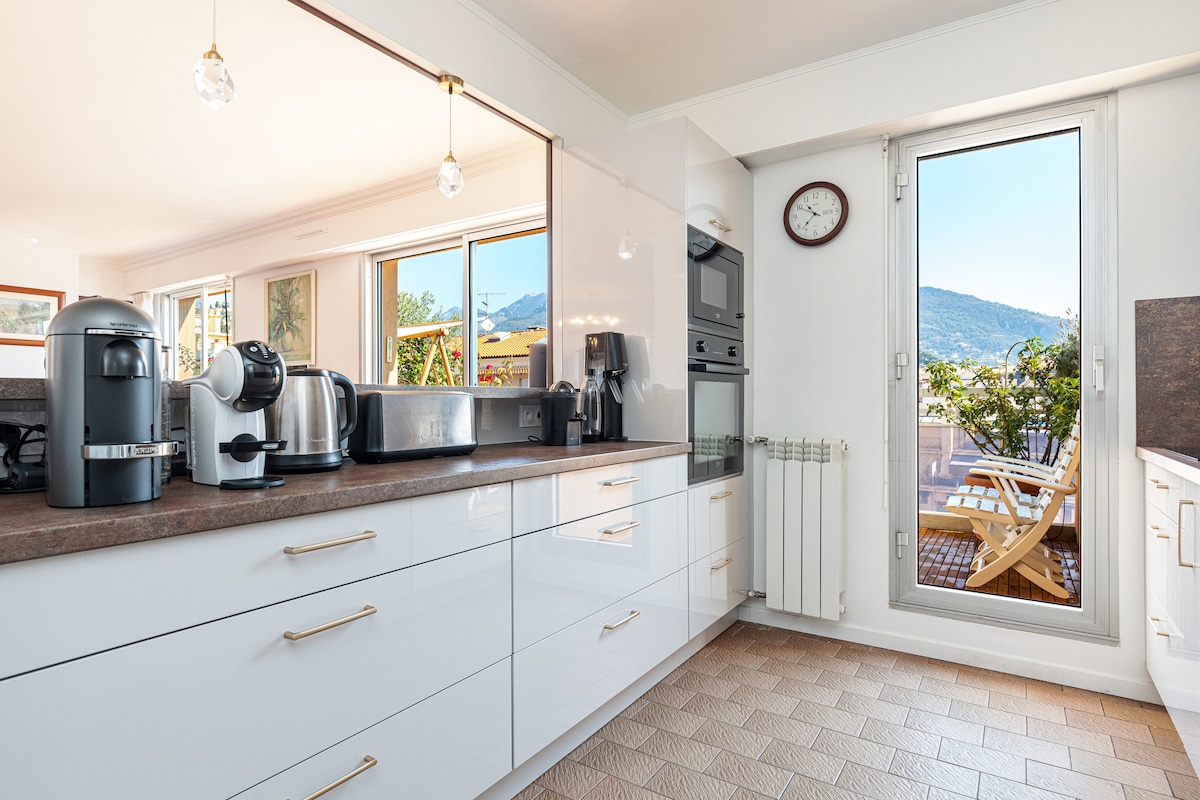 Fullstendig renovert leilighet i hjertet av byen! Likevel veldig stille. Ett soverom + én sovesofa i stuen. Toalett er et individuelt lokale. Gratis sikret parkering. Alle bekvemmeligheter: oppvaskmaskin, vaskemaskin, hårføner, strykejern (og strykebrett), tradisjonell kaffemaskin + Nespresso, brødrister, vannkoker osv. Trådløst nettverk og klimaanlegg. Balkong for utendørs spising (to personer) og en hvilestol å sette foran vinduet: lykkelig! Utsikt over sentrum og de omkringliggende fjellene. Mye dagslys.