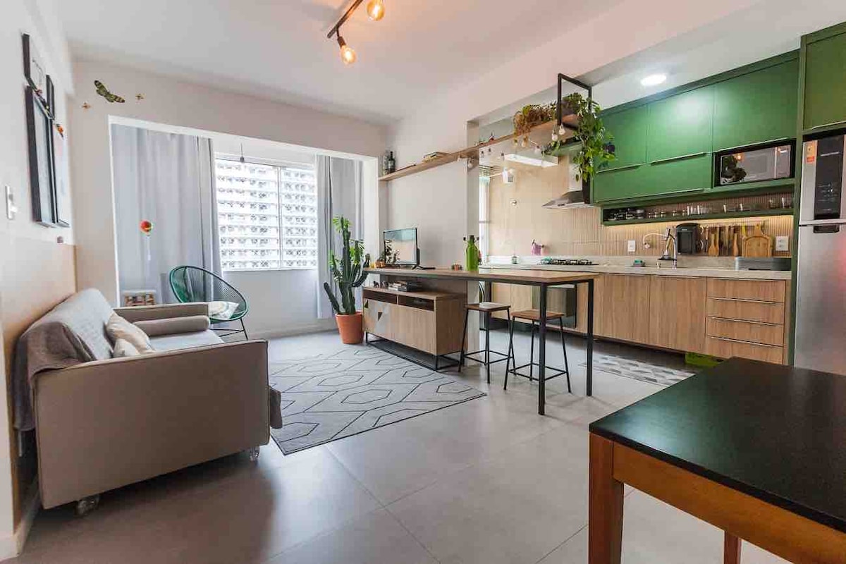 Leter du etter et koselig sjekkpunkt i hjertet av byen? Du vil føle deg som hjemme i dette godt planlagte loftet. Den ligger i sentrum av Florianopolis, og er perfekt for noen som ønsker å utforske øya eller delta på et arrangement i nærheten. Inkluderer: - queensize-seng - komplett gourmetkjøkken. - Vaskemaskin og tørketrommel. - stort bord til måltider og hjemmekontor. - 360 roterende TV slik at du kan se fra hvor som helst i loftsleiligheten. - Rent og moderne bad - trådløst nettverk - komplett klimaanlegg