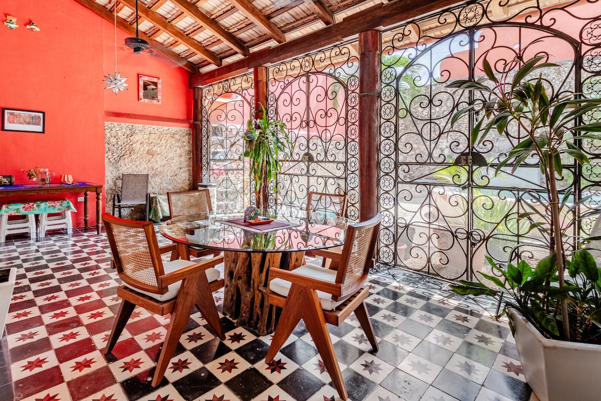 Velkommen, venner! Casa Cardenal er en oase i byen. Eiendommen er fantastisk, med nydelige interiørhager, stor, privat, fargerik og sjarmerende. Bassenget ble designet for bruk av alle aldre, og har en strandlignende atmosfære for å sole seg. Hvert rom er adskilt av den vakre hagen, noe som gir større privatliv til familier og par. Målet vårt er at du skal føle deg som hjemme. Bare les anmeldelsene om den fantastiske servicen. Vi er det beste tilbudet i Mérida. Vi er superhost.