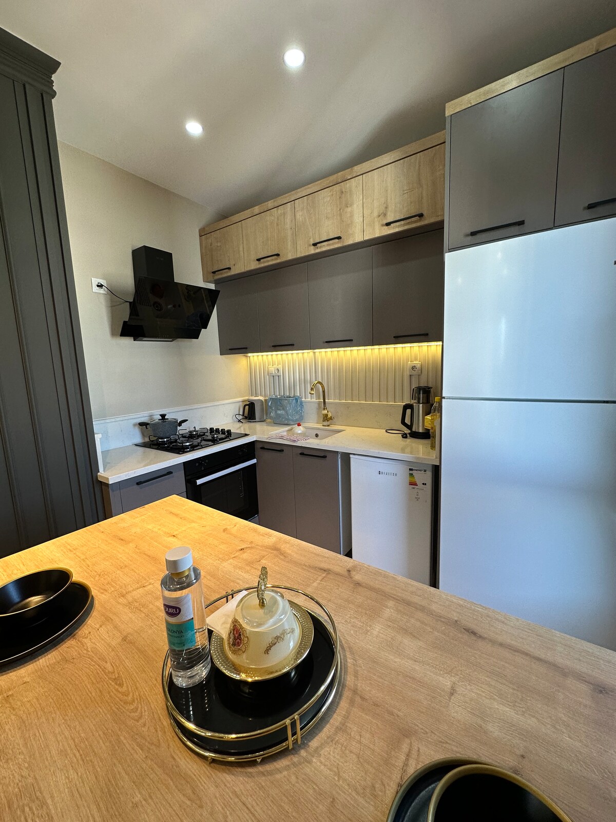 For å senke farten og slappe av i dette unike og rolige tempoet. Vi er her for en komfortabel ferie som ikke kommer til å lete i hjemmet ditt! Vi inviterer deg til en uforglemmelig opplevelse med våre fullt møblerte 1 +1-leiligheter til daglig leie i sentrum. Alt du trenger er tilgjengelig i leilighetene våre, som vi har utarbeidet med alle detaljene. Fullt utstyrt kjøkkenutstyr, rent sengetøy, håndklær.