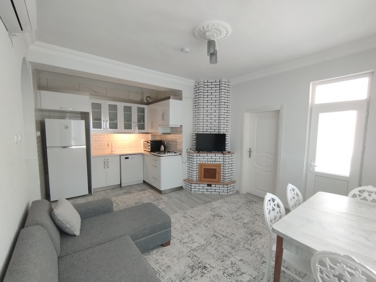 Den moderne 1+1-leiligheten vår, som ligger sentralt, er nøye forberedt for et komfortabelt og fredelig opphold. Den rene, romslige og fullt utstyrte leiligheten vår har en komfortabel seng, sitteplass, kjøkken og bad. Ideelt for jobbreiser eller ferier. Det gir enkel tilgang til stranden, kjøpesentre, restauranter og offentlig transport. Sikker bygning, raskt trådløst nettverk og døgnåpen kundeservice er tilgjengelig.