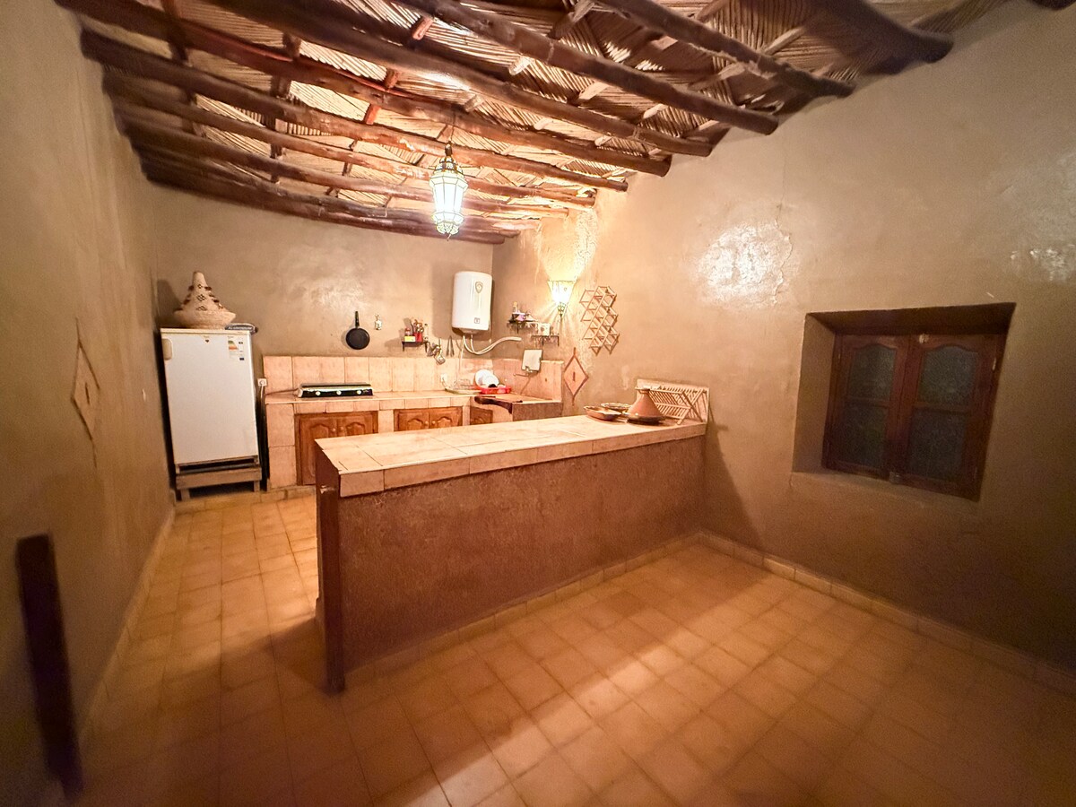 Fordyp deg i roen i et romslig hjem. Dette stedet er langt unna masseturisme, og fra terrassen kan du se det uforglemmelige skuespillet med soloppgangen over de majestetiske sanddynene! Nyt en unik opplevelse: alene eller med Hamid, din ekspertvert for økoturisme. Organisering av oppslukende skreddersydde turer og en komplett fordypning i berberkulturen og landskapene (oase, nomadiske landsbyer). Perfekt for reisende som ønsker fred og lokale tradisjoner.