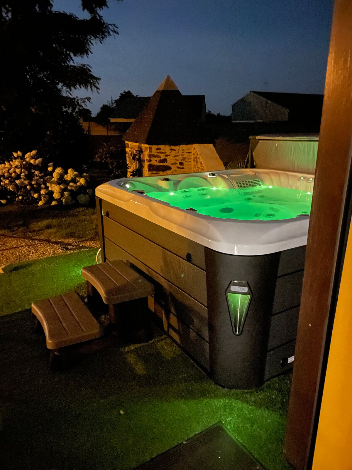Kom og oppdag denne boligen med nøye dekorasjon, og nyt en avslappende stund i sitt private boblebad. Gjestehus som ligger 10 minutter fra Laval, nær hovedveiene (motorvei 5 minutter), på bredden av Mayenne og dens fortauskanter. Består av en stue/stue/kjøkken (utstyrt og møblert), et åpent soveområde med privat boblebad, bad og toalett. Nyt en vakker hage og direkte tilgang til fortauet.
