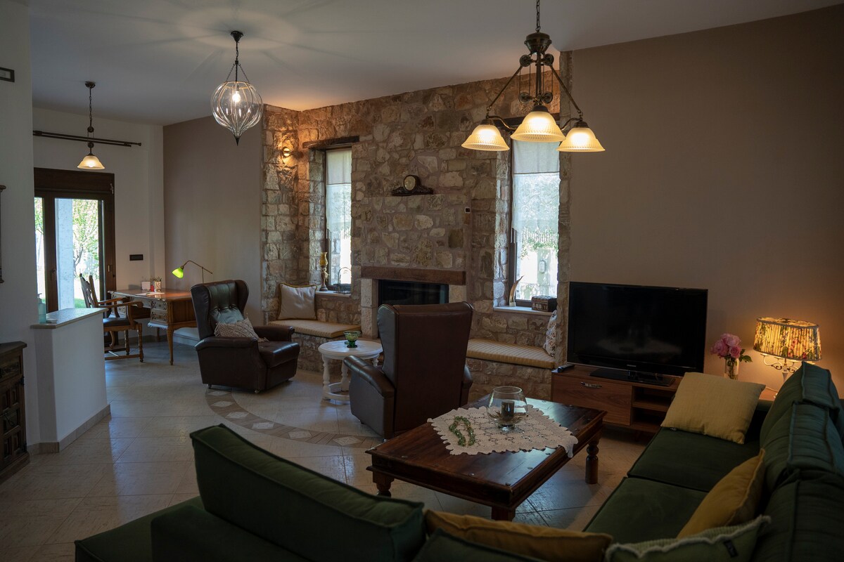 Grand View Villa er et nyrenovert, men klassisk, gresk hjem. Fra de synlige bjelkene til det klassiske kjøkkenet, innredningen og peisen, gir hjemmet en varm, gammel verdensfølelse til et perfekt kryss med dagens bekvemmeligheter og luksus. Hovedsoverommet er vert for et eget privat bad, hvor gjesterommet har to senger for våre forskjellige gjester. To utendørs balkonger ved siden av huset, og stuen gir deg en peis som kan brukes når som helst.