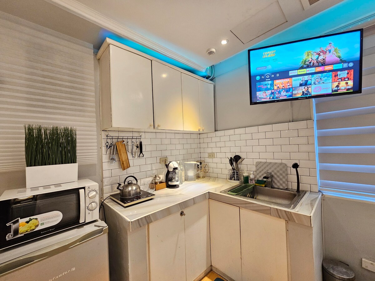 *Oppdaterte møbler: Koselig Teddy-sofa som enkelt kan gjøres om til en komfortabel dobbeltseng i full størrelse. 🛋️ Velkommen til den koselige metropolen! ✨ Leiligheten vår ligger i hjertet av Makati og tilbyr den perfekte kombinasjonen av praktiske, urbane fasiliteter og hyggelig komfort. Når du kommer inn, blir du møtt av en varm, hyggelig atmosfære med stilig, men likevel hjemmekoselig innredning, luksuriøse møbler og behagelig belysning. Det er det perfekte tilfluktsstedet for å slappe av og lade batteriene etter en travel dag i byen.