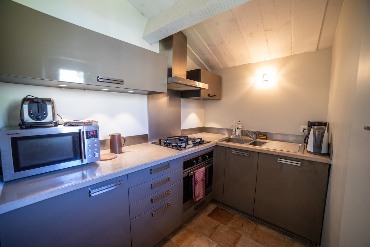 100 % autonom❤ ankomst ❤ Lys, rolig og plassert i grønne omgivelser i Aix-en-Provence-landskapet, dette helt uavhengige huset, som ligger i hjertet av vår 4000 m² store eiendom, er fullt utstyrt og har uavhengig og privat tilgang. • Svømmebasseng/Jacuzzi på 10 m² (✓privat ✓ oppvarmet) • Fullt utstyrt med klimaanlegg • 1 soverom på 20 m² • 1 bad (italiensk✓ dusj) • Utstyrt kjøkken • Privat terrasse • Vaskemaskin • Sengetøy • Privat tilgang