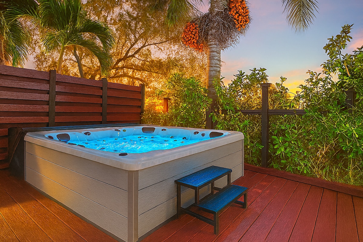 Fredelig, rolig vannkant Jacuzzi oppvarmet basseng
