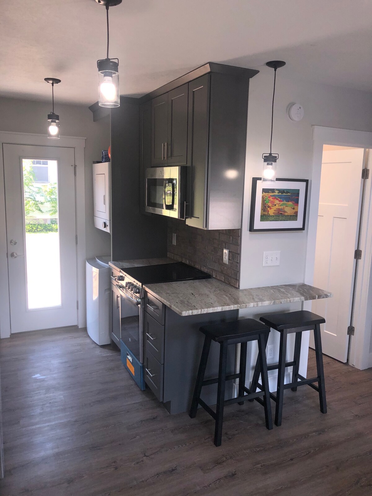 Dette vakre og lyse stedet har 12 fots takhøyde og synlig murstein overalt. Nyt det velutstyrte kjøkkenet for å lage et raskt måltid, eller gå ut av ytterdøren og nyt en mengde lokale restauranter innen rekkevidde! Smart-TV-en har en gratis prime video-konto for din underholdning! Soverommet har en komfortabel kingsize-seng med en liten kontorkrok med et skrivebord! Nyt utsikten over sentrum i Depot Town og toget fra stuevinduet!