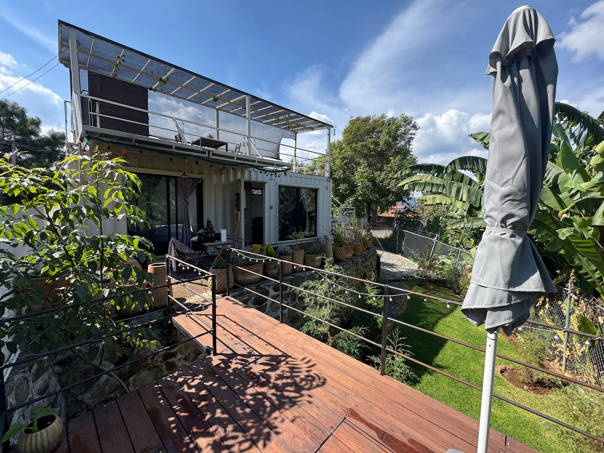 Leilighet laget med en sjøcontainer som ble kondisjonert med alt du trenger for å ha et utrolig opphold, med en eksepsjonell utsikt over hagen. Den har aircondition, vinkjeller og alt du trenger. Du vil våkne opp og kunne beundre valnøttetreet som ligger rett utenfor vinduet ved sengen, noe som vil være en veldig hyggelig og avslappende opplevelse.