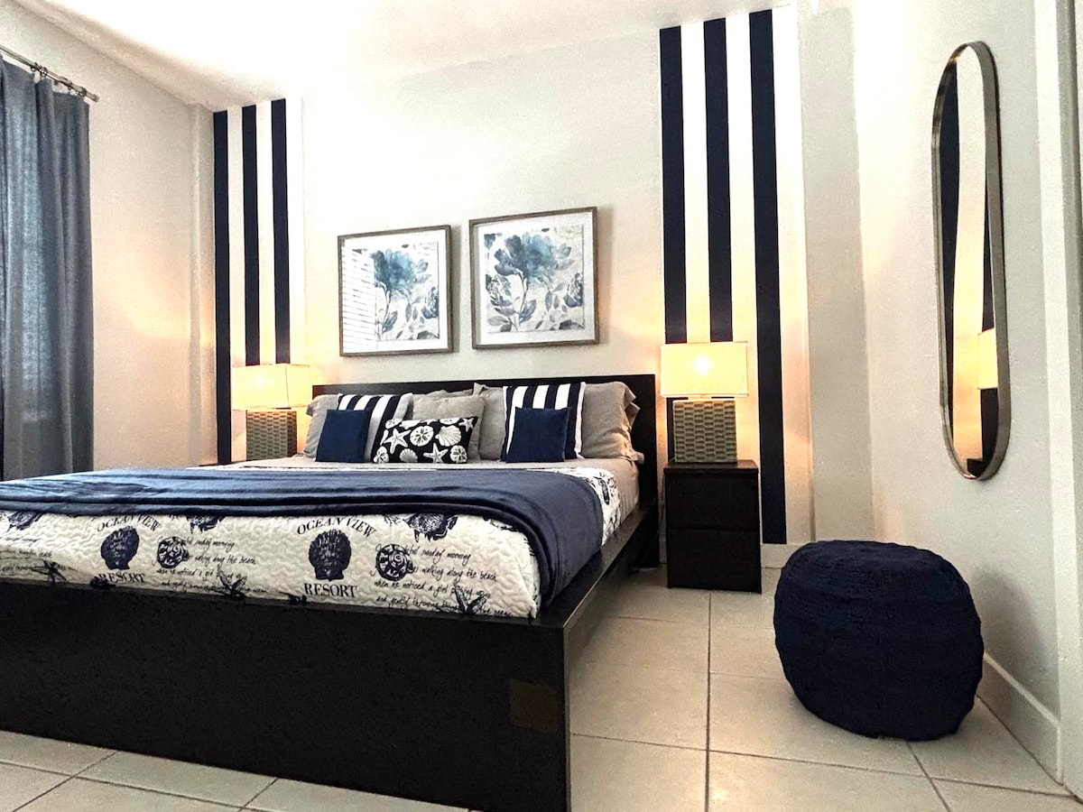 Stor suite med ett soverom som ligger i det ikoniske Fontainebleau Hotel & resort. 1000 kvadratfot med privat balkong. Hele leiligheten med fullt kjøkken og to fullt utstyrte bad og boblebad i hovedsoverommet. Én kingsize-seng. Én sovesofa i full størrelse. Barnevennlig. Barneseng tilgjengelig fra hotellet mot betaling. Rengjøring er IKKE inkludert. Det er en obligatorisk rengjøring på $ 205 + skatt som belastes ved utsjekking. Obligatorisk depositum på $ 250 per natt REFUNDERT etter oppholdet. Parkering IKKE inkludert. Dagspris for parkeringstjeneste kan variere.
