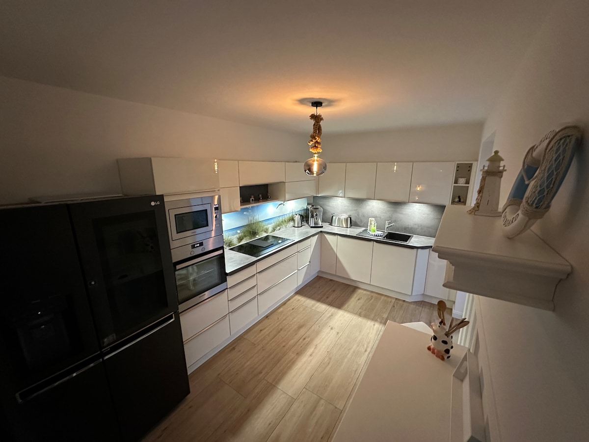 Velkommen til sjøen! Nydelig møblert med RITUALER, WMF og Nespresso. Den høy kvalitet og kjærlig fløyel i møblene ligger mot moderne tremøbler for absolutt velvære og avslapning. Fantastisk utsikt 365 dager i året. Nyt utsikten til viken fra den komfortabelt møblerte terrassen eller ta en forfriskende svømmetur etter badstuen. Korte avstander til shopping inkludert. Og AHOY! Eventyrbassenget inkludert sauna termisk bad er gratis for deg!