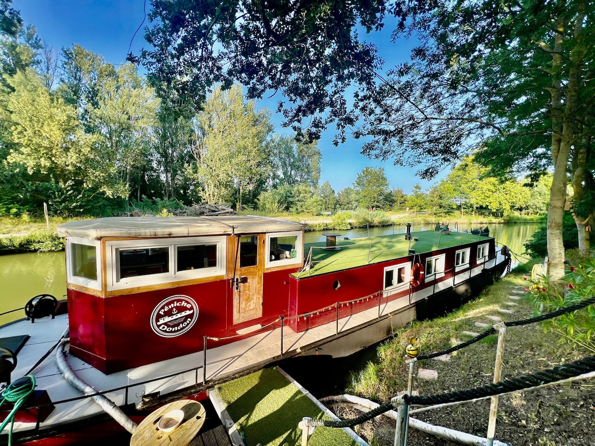 Velkommen ombord på Terry Carly, vår sjarmerende båt fortøyd langs Garonne-kanalen! Hvis du leter etter en fredelig og avslappende ramme for å tilbringe en natt, har du funnet din fredelige oase. Tenk deg å sovne vugget av de myke bølger i vannet og våkne opp av den søte sangen fra fuglene. Den ideelle rammen for en romantisk ferie, et øyeblikk av ren avslapning eller uttrykket "la tiden ta seg tid" får sin fulle mening.