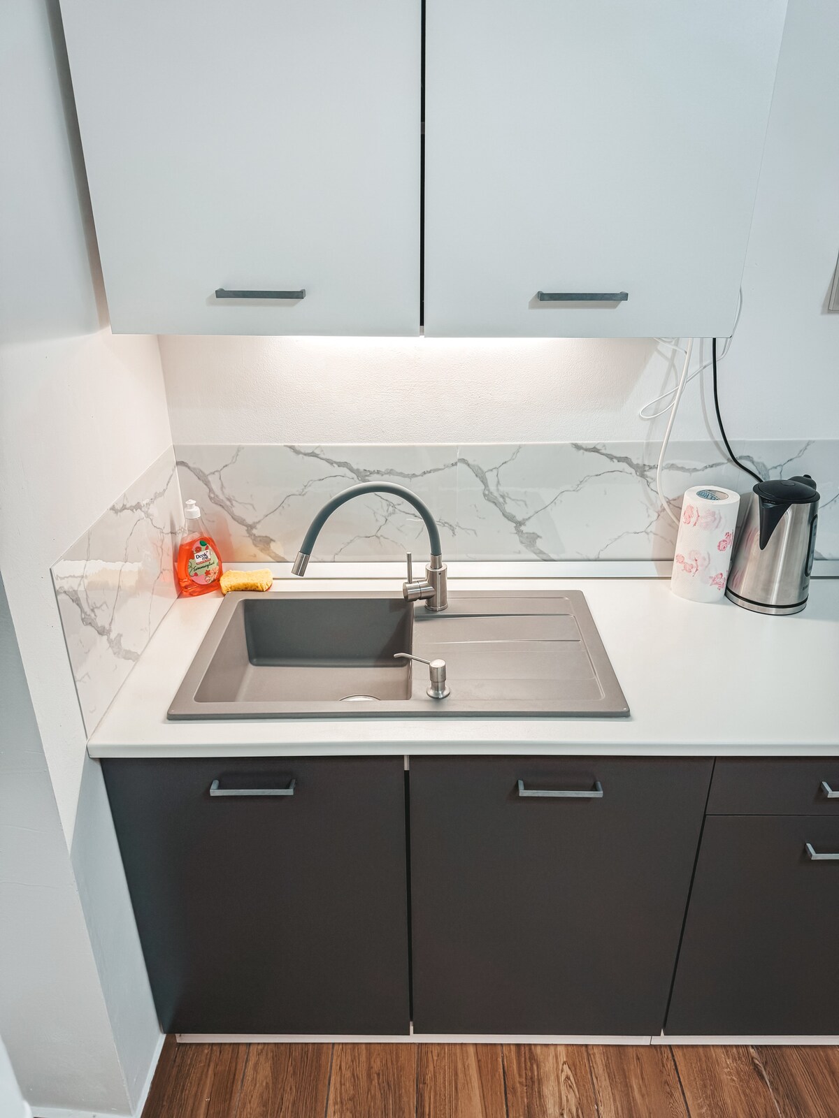 A lakás 1 hálószobával, egy nagy konyhával illetve fürdőszobával rendelkezik. A parkolás ingyenes. A tömbház mellett egy modern játszótér is található. A közelben élelmiszer üzlet és bevásárló központ is van.