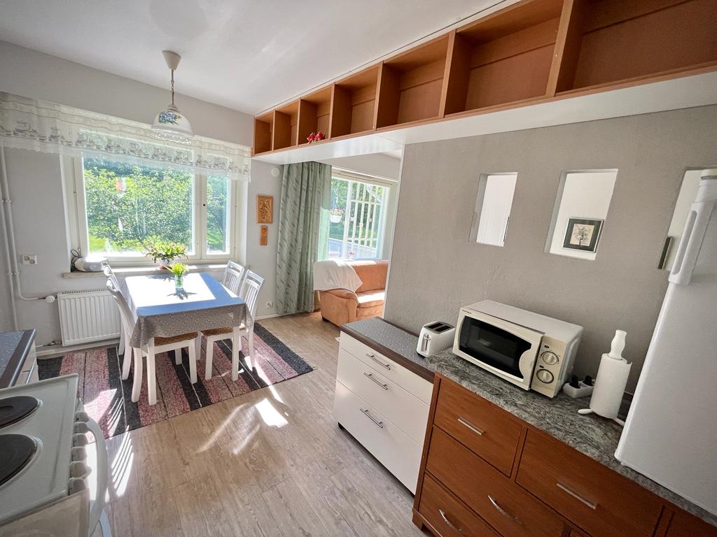 Dette spesielle stedet ligger sentralt, noe som gjør det lettere å planlegge besøket. Du krysser bare skogstien, og du er i nærheten av sentrumstjenestene. Du kan gå til torget på et par minutter. Det er mange spisesteder i nærheten, så det er mye å velge mellom. Reisesenteret ligger en kort spasertur unna, og det er en taxiholdeplass ved torget. Det er en gratis parkeringsplass for bilen din. Fra leilighetens vindu kan du se f.eks. Kenkävero, Naisvuori og kirken. Studio M3 var med på designet, og noen av bildene er fra Kontrast.