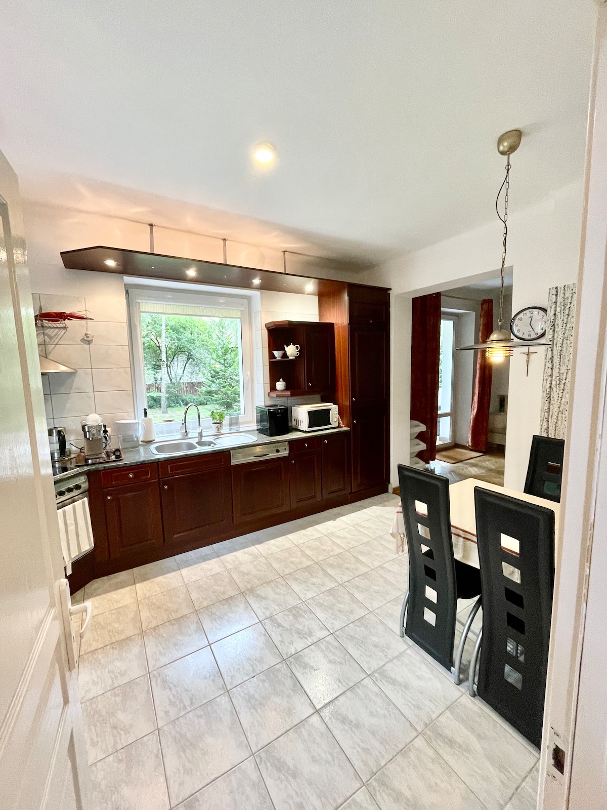 West Guest House ligger i et rolig område i Kampinos-skogen, i byen Klaudyn, 12 km fra Warszawa sentrum (ca. 20 minutter med bil). Vi tilbyr deg et 165 kvm fullt utstyrt hus, godt møblert og komfortable fire soverom, kjøkken, to bad, garasje for to biler og parkeringsplasser utenfor. Huset er omgitt av en stor hage med terrasse. Det er også en liten lekeplass – det beste stedet for barna dine. Hagen har en minispa med sauna og jacuzzi – betalingsalternativ.