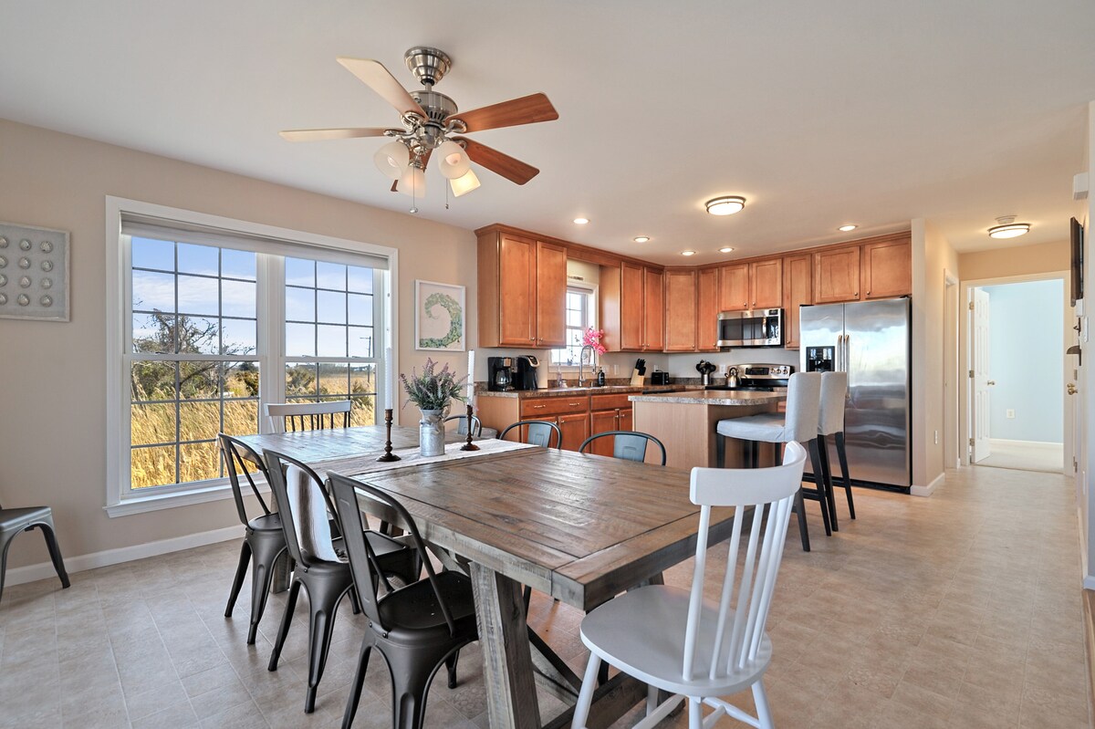 Fredelig, avsidesliggende, rolig, men likevel nær attraksjoner. Hjemmet vårt ligger i den mer private (dvs. ingen folkemengder) sørlige enden av Broadkill. Strandpromenaden foran hjemmet vårt fører til adkomsten til strandstien over gaten. Du får nyte utsikten fra både terrassen foran og bak, inkludert stranden og Prime Hook Wildlife Refuge. Hvis denne eiendommen er bestilt, eller hvis du trenger flere hjem for en gruppe, er vi vertskap for flere hjem i nærheten av stranden. Klikk på vertskapsprofilen min for å se dem.
