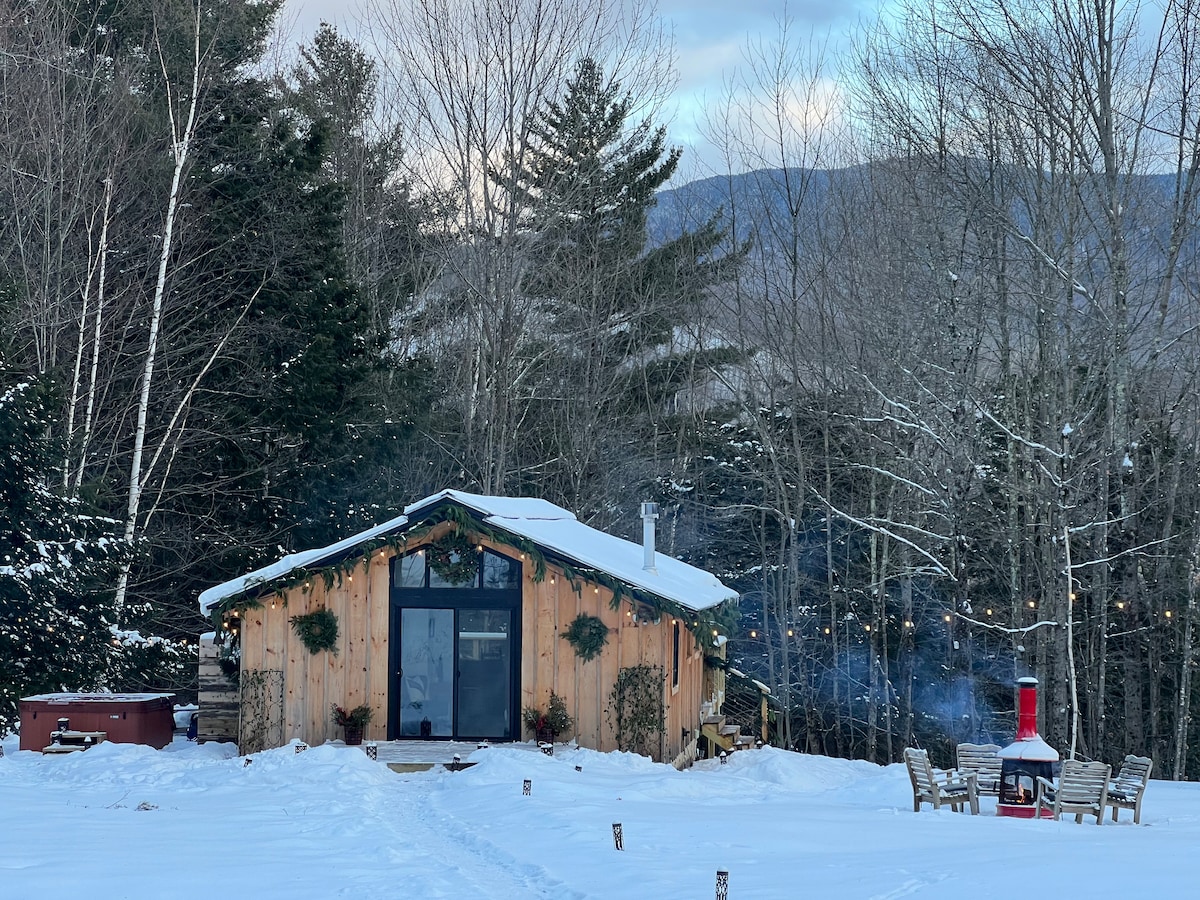 Welcome to our treehouse inspired, modern cabin overlooking The Kenfield Brook on Terrill Gorge. We are located 5 miles from Stowe and its attractions, and just a few minutes from downtown Morrrisville with all its amenities. Just upstream from the picturesque Cady’s Fall swimming hole and across the brook from the amazing Cady’s Falls bike trails, our cabin is perched atop the hillside. With its simple, minimalist design it’s easy to immerse yourselves in nature and feel at home in the trees.